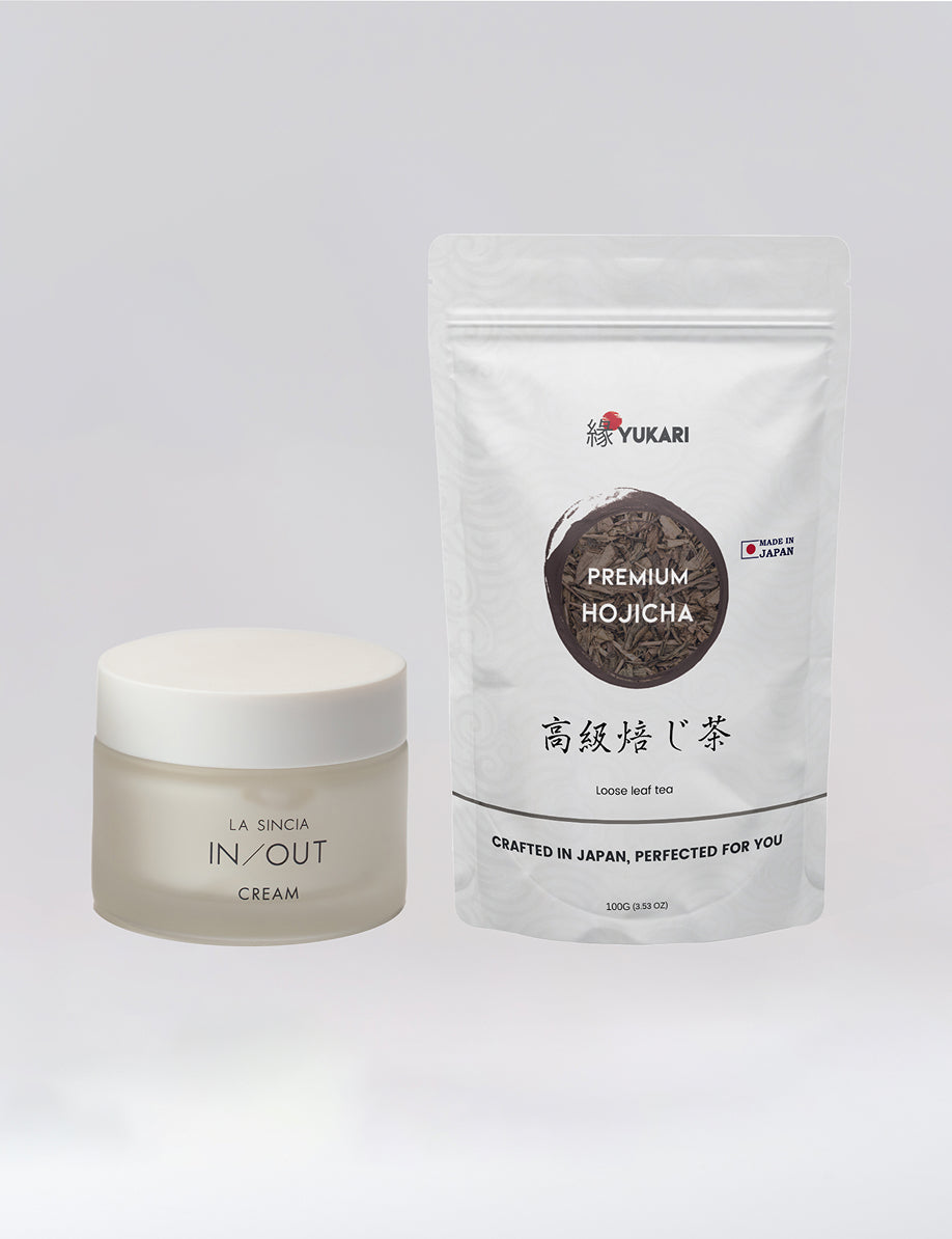 Unwind with this calming duo of nourishing skincare and soothing hojicha tea — a gift of serenity and softness.